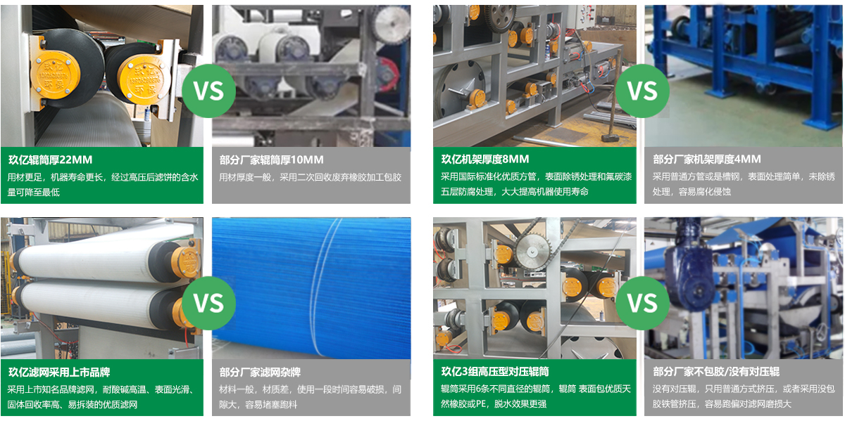 椰蓉经过输送机,输送到高压对辊压榨脱水机的布料器中,通过螺旋布料器均匀平铺在网带上,同时控制好平铺在网带上厚度,网带随着设备的运行,然后上下两条完全涨紧的环状网带夹住果蔬果渣物料,在驱动辊带动下,分别通过预压脱水区和三组对辊高压区进行对辊连续多次机械物理挤压,将大量的汁液压出。根据物料的特性调节挤压力度,满足客户对物料水分要求。